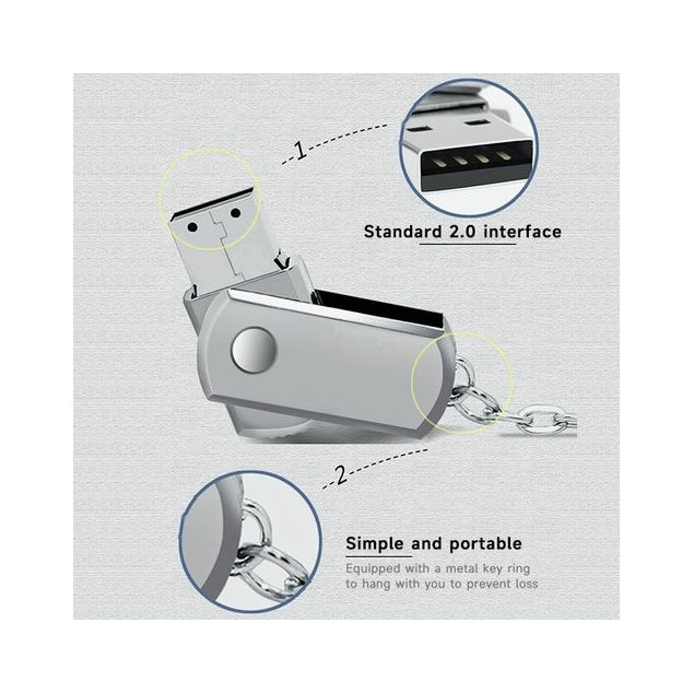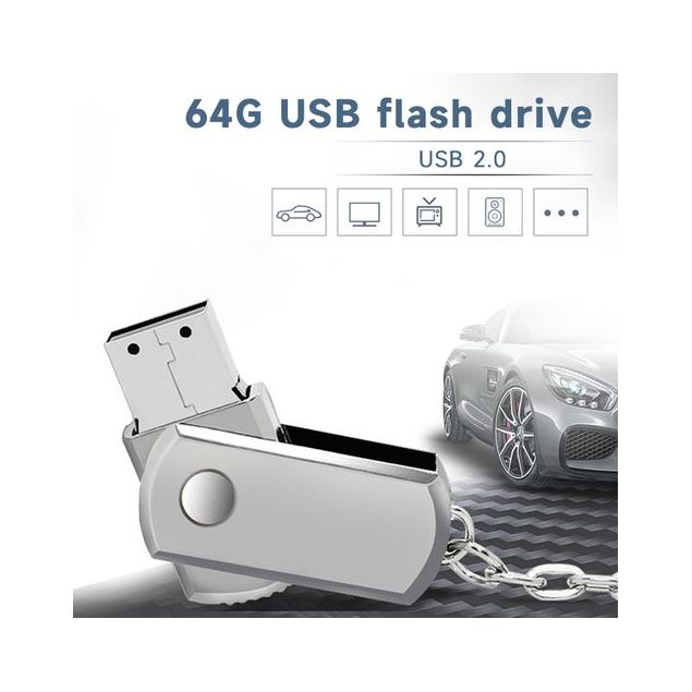 Spécification : Couleur : argent Taille du produit : 39mm*16mm*8mmInterface : USB2.0Capacité : 64 Go Taux de transfert de données rapide - Lecture : 15 Mo/s et écriture : 6 Mo/s