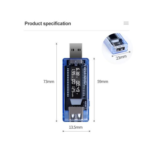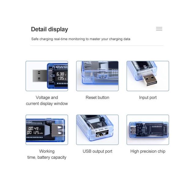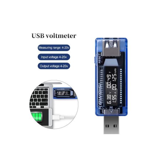 Compteur de puissance et voltmètre USB, détecteur de tension, capacité d'alimentation électrique, testeur de tension, indicateur d'énergie, détecteur d'ampèremètre, 3 en 1