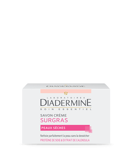 Riche et onctueuse, la formule crème du Savon DIADERMINE en protéine de soie et aux extraits de Calendula nettoie et protège la peau tout en douceur.