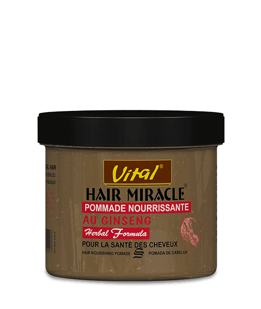HAIR MIRACLE est une pommade nourrissante spécialement conçue pour la pousse et la repousse des cheveux. Il nourrit, fortifie et protège vos cheveux des agressions extérieures. Enrichie à l'huile de ricin, il lutte contre les pellicules et chute de vos cheveux. Réhydrate et régénère les cheveux desséchés, stimule le cuir chevelu et accélère la pousse des cheveux. Grace à sa formule aux extraits de GINSENG, vos cheveux sont assouplis.