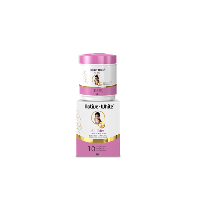 Crème correctrice clarifiante ACTIVE-WHITE au miel Pot de 38g La crème correctrice ACTIVE-WHITE hydrate, aide à estomper les taches (coudes, phalanges, aisselles). Utilisée quotidiennement, le teint retrouve éclat et harmonie. De plus grâce aux propriétés des extraits de miel, la peau est mieux protégée et plus lisse Bénéfices du produit • Hydrate et clarifie la peau • Harmonise le teint • Assouplit et protège la peau. Mode d'utilisation Appliquer sur une peau propre et sèche de préférence après la douche ou le bain. Bien rincer les mains après application. En cas de contact avec les yeux, les rincer immédiatement....