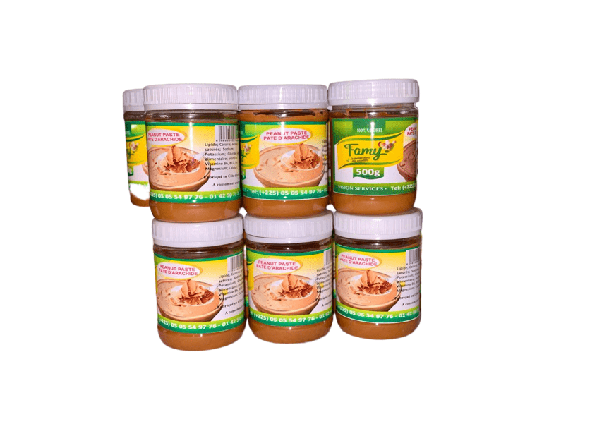 Notre pâte d’arachide est très utilisée dans la culture culinaire africaine, en particulier pour les sauces. Il s’agit d’une source de protéines, de fibres, de minéraux et de vitamines B3, E, B1 et B6! Elle est également riche en lipides, ils constituent une source de “bons gras” pour la santé cardio vasculaire et l’organisme.