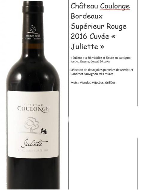 Vin Rouge Château De Coulonge : AOC Bordeaux Supérieur Rouge 2015