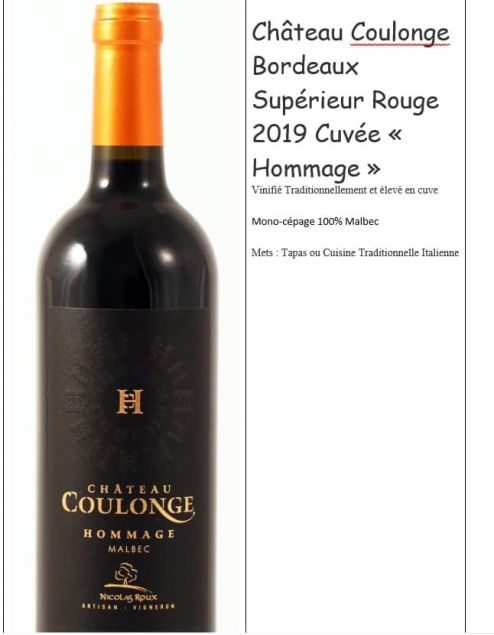 Vin Rouge Château De Coulonge : Cuvée « Hommage » AOC Bordeaux Supérieur Rouge