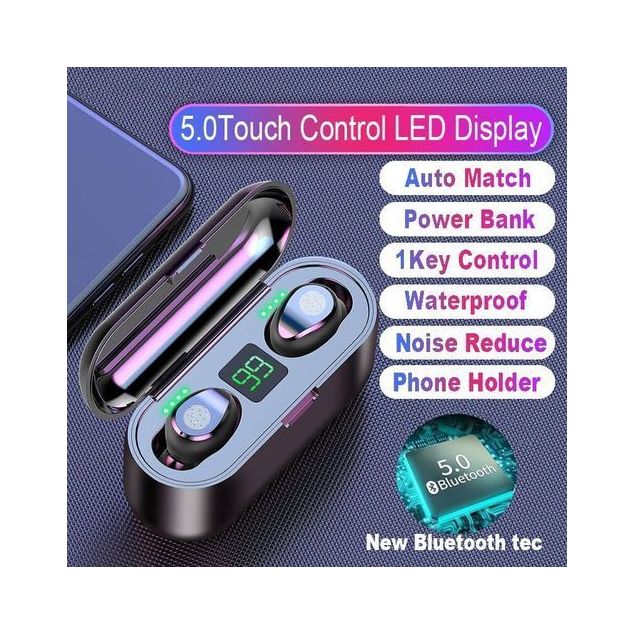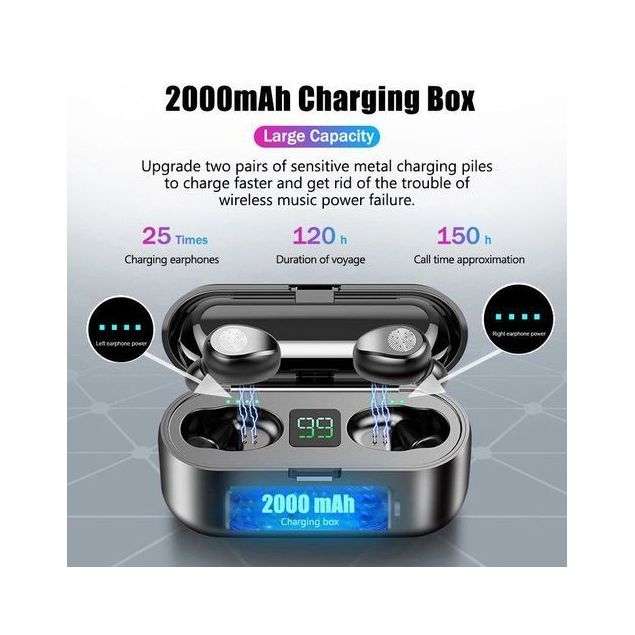 ECOUTEUR SANS FIL Bluetooth 5.0 - F9 Noir