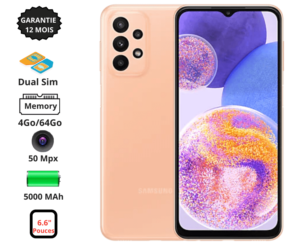 Samsung Galaxy A23 – 6.6" - Dual Sim - 50Mpx - 4Go - 64 Go – 5000mAh