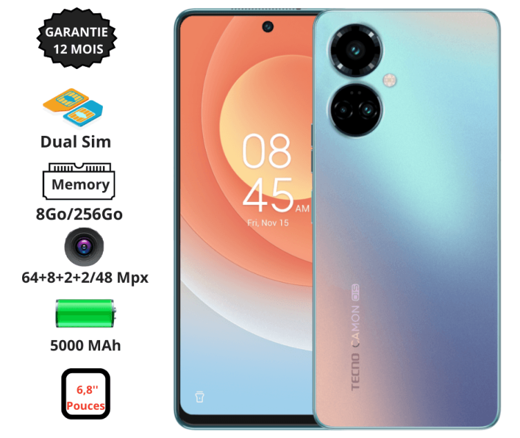 Tecno Camon 19 Pro – 6,8" – 8Go – 256Go - Quad Caméra 64+8+2+2 Mpx / 48 Mpx Selfie- 5000 MAH