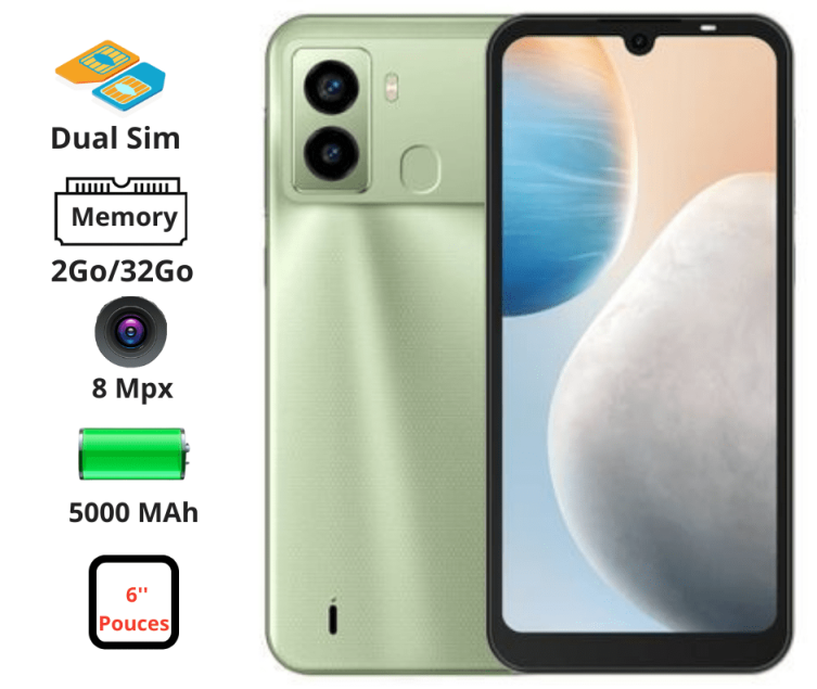 Tecno Pop 6 - 6'' HD+ - 2/32Go - 8Mpx - 4G LTE - 5000mAh – Vert